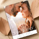 Announce your big day with this modern minimalist photo save the date card featuring elegant white text overlay on your favorite photo.