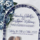 Crafted on sleek, crystal-clear acrylic, this design features a graceful arched silhouette, rich navy woven-border accents, and stylish modern script fonts that elevate the entire composition. The airy layout keeps the focus on your names, date, and venue with a custom transparent photo that adds a personal, heartfelt touch.