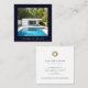Make a lasting impression with our Modern Minimalist Photo Business Cards, featuring a stunning photo image elegantly framed by a rich dark navy border. The reverse side showcases a clean white background, complemented by a sleek gold logo and customizable contact information. These cards exude professionalism and elegance, perfect for real estate agents looking to present their properties and services with a modern, high-end touch.