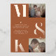 Modern minimalist wedding design is all about simplicity and elegance. It emphasizes clean lines, neutral palettes, and a focus on the essentials. This design in trendy burnt orange color uses minimalist style typography with customizable couple photos and bold monograms. Whether you're planning an intimate ceremony or a large reception, modern minimalist design is a perfect choice for couples who want to create a timeless and sophisticated atmosphere for their wedding celebration.