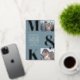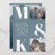 Modern minimalist wedding design is all about simplicity and elegance. It emphasizes clean lines, neutral palettes, and a focus on the essentials. This design in trendy dusty blue color uses minimalist style typography with customizable couple photos and bold monograms. Whether you're planning an intimate ceremony or a large reception, modern minimalist design is a perfect choice for couples who want to create a timeless and sophisticated atmosphere for their wedding celebration.