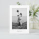 This wedding thank you card has a minimalist and elegant design. The front showcases a black-and-white photo of the couple framed by a clean white border, with simple text below for a refined touch. The back features a centered message in a classic serif font, complemented by a script detail at the bottom for a personal and romantic feel. The overall style is timeless, airy, and sophisticated.