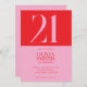 Modern Minimalist Pink Red 21st Birthday Invitation