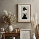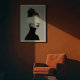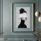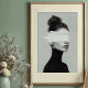 This striking black and white portrait captures the essence of minimalism and surrealism in one elegant composition. Featuring a woman in profile, styled in a sleek black turtleneck with her hair in a loose bun, the image radiates sophistication and mystery. A bold horizontal white paint swash obscures her eyes, blending the boundaries between photography and abstract art. The high-contrast monochrome palette and soft lighting emphasize the smooth textures of the skin and fabric, while the paint element introduces a disruptive yet artistic statement. Perfect for contemporary art lovers and those drawn to conceptual fashion photography.