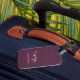 Simple elegant solid purple with script name and serif surname travel accessory.
