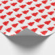 Simple, modern Scandinavian style red and white Christmas gift wrap, featuring red pine trees on a plain white background.