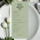 Modern Minimalist Sage Green Wedding Table Menu. "Bon Appetit" script.