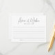 Modern minimalist enclosure card design features soft black lettering on a crisp white background. Customize the text and personalize to match your event colors or theme. This Advice & Wishes enclosure card asks bridal shower, baby shower, or wedding guests to share their best words of advice and well wishes for the bride, mom to be, couple, or parents. Place a stack at your event or include as an enclosure card with shower invitations.