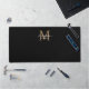 Modern Minimalist Script Black Gold Monogram Desk Mat