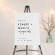 The sign I ordered for my daughter's engagement party was perfect! It arrived exactly as described and ready to place on the easel. It was delivered on time. The printing was clear and the colors were very pretty, just like it was advertised online.
