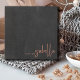 This chic note card features your name in a handwritten caramel script calligraphy "a note from" on a distressed gray black chalkboard effect background. For an edgy modern effect. The typography is stylishly placed in the lower right corner. The back of the note card is white.