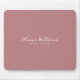 Modern Minimalist Mouse Pad with Personalized Name in Script. It can be customized with job title, custom text, etc. Muted light pink-red background with white text.