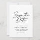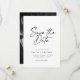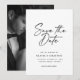 Modern Minimalist Script Photo Simple Wedding Save the Date - Save the Date in style with this modern and elegant card design. Featuring bold script and sleek typography, this timeless layout is perfect for a sophisticated announcement. The classic monochrome palette of black and white ensures a refined look, with the option to customize colors to match your theme. The back design includes space for a cherished photo, making it both personal and stylish.