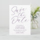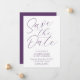 Romantic calligraphy modern minimalist script purple Save the Date announcement card.