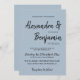 Yes, you can print on the back of your invitation for free! Most designs already have a corresponding design on the back that can be personalized using the Design Tool and going to Layers. This is a great way to communicate more information or further personalize your Modern Minimalist Script Simple Dusty Blue Wedding Invitation. The option is really up to you.