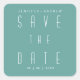 Modern Minimalist Script Turquoise Save The Date Square Sticker