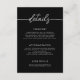 This black and white wedding details card features a trendy and stylish design with a touch of modern flair. The easy-to-read layout ensures guests can find all the essential wedding information, including transportation details, accommodation options, and a website for further information. This minimalist card is the perfect way to keep your guests informed about your special day.