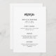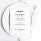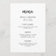 This elegant, minimalist wedding menu card features modern script typography and clean, sans serif text for a simple and stylish black and white design you will love.