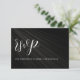 This modern and minimalist rsvp card begins with stunning calligraphy script. A simple serif script completes the text-based design. Soft rays of light flow across the page on the diagonal to create an abstract design.
