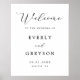 Modern and minimalistic wedding welcome sign featuring elegant script text. This black and white design is perfect for any season.