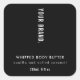 Create professional labels for your skincare line, candles or products using this modern black square product label. Featuring a sleek minimal layout with fully editable text and colors, these square stickers can be used on cosmetic jars, bottles, pouches or boxes - verify size to ensure a good fit. Whether you are making labels for lotion, body butter, candles, home fragrance, or any other product this label design is super versatile!