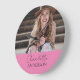 Modern Minimalist Simple Name Photo Pink Large Clock