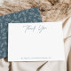 Elegant thank you note card featuring "Thank You" in a slate blue handwritten script. Personalize the front of the botanical thank you note cards by adding your names or custom text. The custom stationery reverses to display a beautiful foliage pattern. The slate blue thank you note cards are perfect to use for weddings, baby showers, graduations, birthdays, and more!