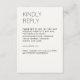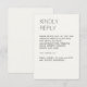 Minimalist wedding RSVP response card designed to coordinate with our "modern minimalist photo" wedding stationery collection. Features crisp, clean minimalist typography with bold, oversized headers, each piece creates a striking yet understated aesthetic. Simple, clean, crisp composition available in a curated selection of contemporary background colors. Mix-and-match colors with other stationery products to create your perfect wedding stationery suite. Fully customizable and easy to personalize, this enclosure card set is perfect for those who value sleek design and effortless sophistication for their special day. Check out the rest of the collection in our store. ✦✦✦
