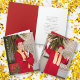 Modern Minimalist Simple Crimson Red And Brown Split Square Photo Graduation Folded Thank You Card.