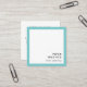 Simple and professional square business cards feature your name and title or occupation in the lower right corner, framed by a chic turquoise aqua border. Add your contact information to the reverse side. Includes three social media icons and a field for your username.