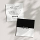 Simple and professional square business cards feature your name in bold modern lettering on a colorblock black and white background. Add your contact information to the reverse side. Includes three fuchsia pink social media icons and a field for your username.
