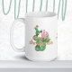 Sweet Pinks & Greens in this fun modern minimalist Merry Christmas Cacti Mug with 2-sided printing and "Happy New Year Too!" Whimsical design and typography!