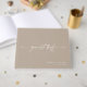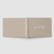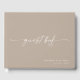 Preserve the heartfelt messages from your wedding guests in this modern and minimalist guest book. The elegant script "Guest Book" is paired with a subtle heart icon against a taupe background, offering a sophisticated touch. This design is perfect for couples seeking a clean and refined aesthetic for their wedding day. The customizable area below allows for the couple's names and wedding date to be elegantly displayed, making it a unique reflection of your union. Your guests will love leaving their notes and well-wishes in this beautiful, understated keepsake.