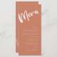This is Minimalist Terracotta Wedding menu, that will add a touch of elegance to your Wedding or any other event decor. Menu Card is doublesided, and all text is editable, just click on 'Personalise this template'. To change background color, click on "Customize further".