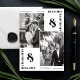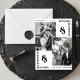 Announce your special day in style with this modern minimalist two-photo save the date card. Featuring clean lines and bold typography, this design allows you to showcase two of your favorite engagement photos, highlighted by a contemporary black-and-white color palette. With elegant placement of the couple's names and date, this card perfectly balances sophistication and simplicity. Ideal for couples seeking a timeless, sleek, and personalized save-the-date design.
