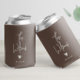 Keep drinks cool in style with this modern minimalist can cooler! Personalize simply with your last name and date of nuptials for a cool custom wedding favors. This is the earth tone and bright ivory version.