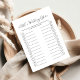 Elevate your wedding reception with our Modern Minimalist Wedding Games Card – the perfect addition to an elegant, contemporary celebration. Designed with sleek lines and a clean, minimalist aesthetic, this game card effortlessly blends with any modern decor, making it a stylish yet fun way to entertain guests. The card offers engaging games like Wedding Bingo, Find the Guest, and Words of Wisdom, encouraging interaction and laughter among friends and family. Printed on premium-quality cardstock with a choice of classic monochrome or soft neutral tones, this game card adds a refined touch to your event, creating unforgettable moments that your guests will cherish.