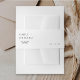 Custom-designed wedding invitation belly band featuring clean and modern black and white foliage design with personalized names and date.