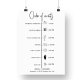 This wedding timeline sign features an attractive arrangement of events. Beautiful black and white watercolor timeline graphics and elegant handwritten calligraphy embellishments grace this design.