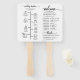I loved these programs. Note: they do take time to assemble. Ofcourse I left most to the last week and I had my friend finishing them a few days before. I had an outdoor June 1, 2019 wedding with 180 people. These matched my invites and thank you cards. I loved, loved Zazzle's ability to customize everything about these products. I spent a lot of time getting them just how I wanted. So many other sites do not let you customize much (move icons around, remove, add, enlarge, change fonts etc...). These are a very optional thing for a wedding, not sure anybody would have missed them. But for me, I love being able to supply something to read while waiting, and honor everyone in the wedding. They are weighted, didn't fly around in the wind, and offered a nice fanning tool. The first time I ordered them the font was fuzzy. So, I enlarged the print and it helped considerably.