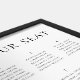 Wedding seating chart sign featuring modern minimalist typography in black and white color.