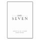 This wedding table number features a clean and elegant design with a white background and black text. A delicate script font highlights the word “table,” while the number is spelled out in bold serif letters for clarity and style. Additional smaller text at the bottom in serif and italic fonts adds a refined finishing touch, creating a minimal yet sophisticated look perfect for a formal wedding.