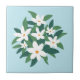 Modern Minimalist White Jasmine Floral on Blue Ceramic Tile