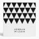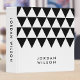 Modern minimalist binder that you can personalize with your name featuring black triangle pattern against a white background. Great for office or school.