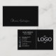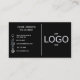 Black modern minimalistic logo business card with white text. The front has just the owners name in a white script font like a handwritten signature on a black background. The back has the essentials on the left side like; name, Company or title, street address, phone, e-mail, mobile and webside. On the right is your logo, iits easy to change to yours.