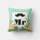 Modern Mint Damask Wedding Invite Throw Pillow
