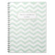 Custom-designed notebook featuring pastel mint green zig zag/chevron pattern with personalized name.