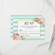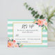 Modern Mint Green Stripes Floral RSVP Reply Card