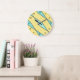 A modern retro geometric pattern of yellow, mint green and black zigzag stripes plays across this wall clock. It is a Funky, bright and bold design for a fun clock. This image is original photography by JLW_PHOTOGRAPHY.