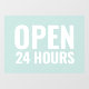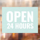 Let your customers know you're always open with this stylish mint green and white “Open 24 Hours” window cling. Perfect for cafés, restaurants, convenience stores, laundromats, and more! The bold, minimalist design grabs attention day or night, helping boost walk-in traffic. Easy to apply, remove, and reposition. Customize the size to fit your storefront perfectly. A must-have for modern, open-late businesses.